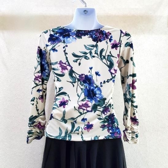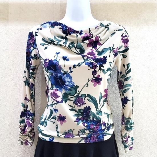 【JOAN】クリーム地花柄ドレープ トップス(Sサイズ)
